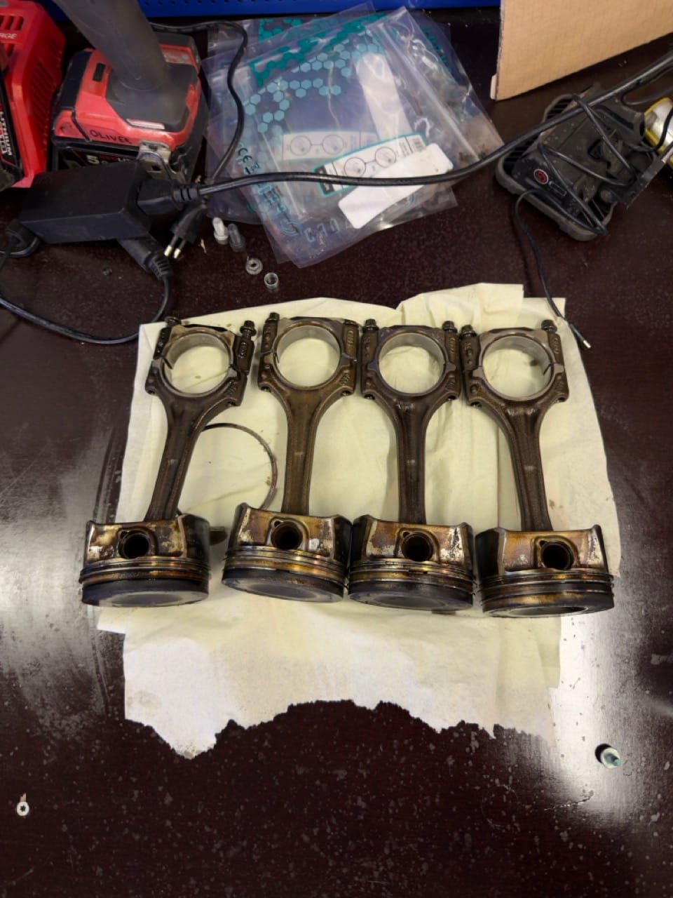 We've had the pistons out and laid them all out in order so everything stays organised, and they're now being cleaned and prepared before reassembly. It's one of those jobs that doesn't make for the most exciting update, but it matters later when everything has to go back where it belongs.